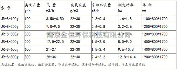 空气源臭氧发生器参数列表